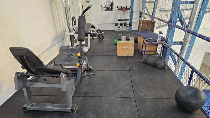 La renovación incluye la incorporación de modernas máquinas de musculación y la instalación de pisos de goma reforzada, especialmente diseñados para absorber el impacto de mancuernas, discos y elementos pesados. Este material no solo protege el suelo y alarga la vida útil de las instalaciones, sino que también aporta mayor seguridad a quienes utilizan el espacio para entrenar.
