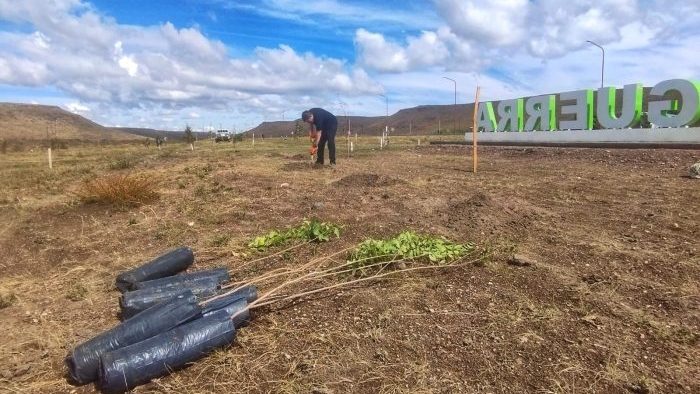 El programa se lleva adelante junto con el Ente de Desarrollo de la Región Sur y las diferentes comisiones de fomento. En este caso estuvieron presentes el Director del Ente, Darío Ibáñez; la Comisionada de Fomento de Aguada de Guerra, Cecilia Roldán, y equipos técnicos del área de Recursos Forestales y el vivero.