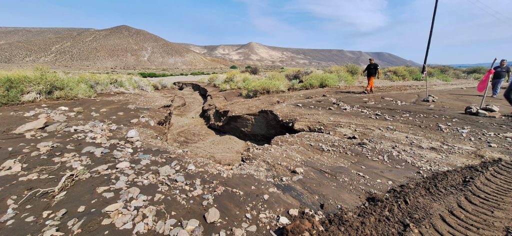 En tanto, desde las primeras horas de este sábado está trabajando en el lugar una motoniveladora equipada con casilla, tanques de combustible y agua, iniciando los trabajos desde Mamuel Choique hacia Río Chico, con la ejecución de desvíos provisorios que permiten recuperar la transitabilidad en los sectores más comprometidos.